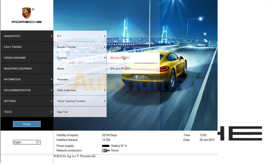 1.Click [DIAGNOSTICS]->[Cayenne]->[92A from MY 2011]
