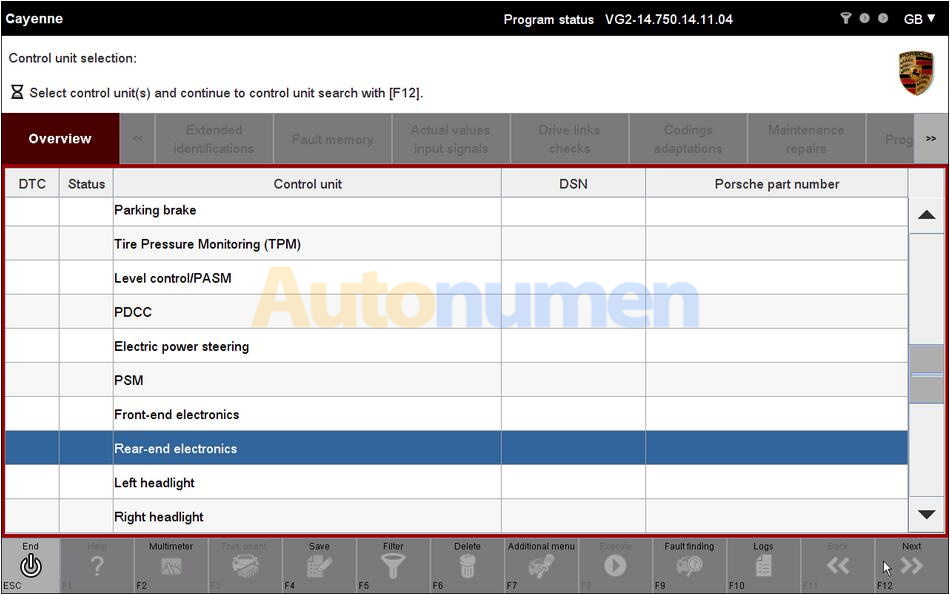 Porsche PIWIS 2 backend electronic code for Cayenne
