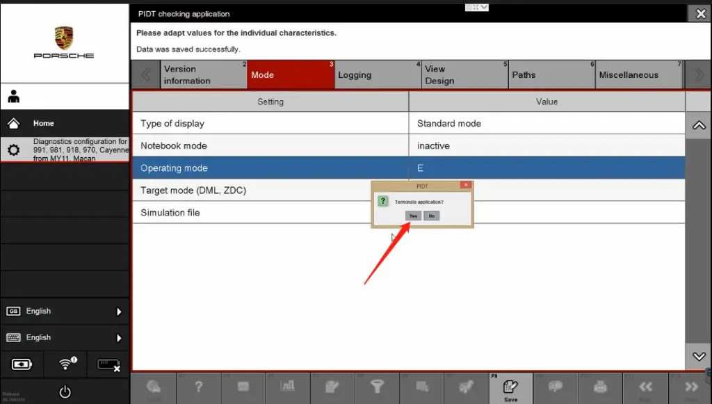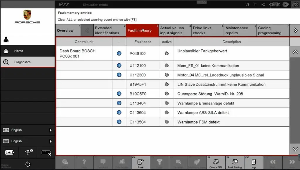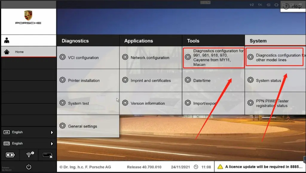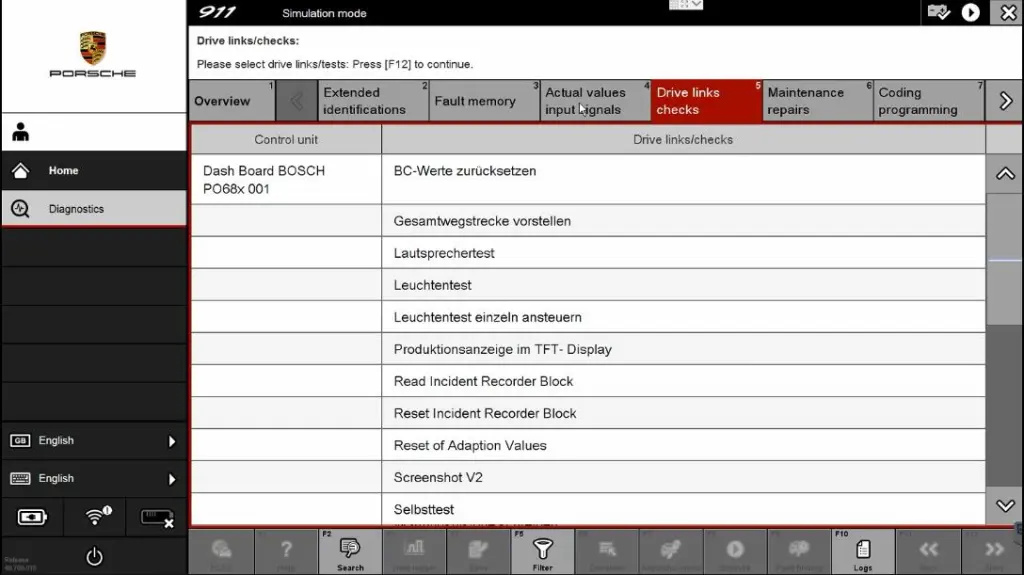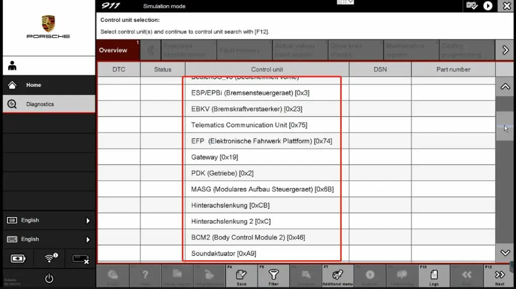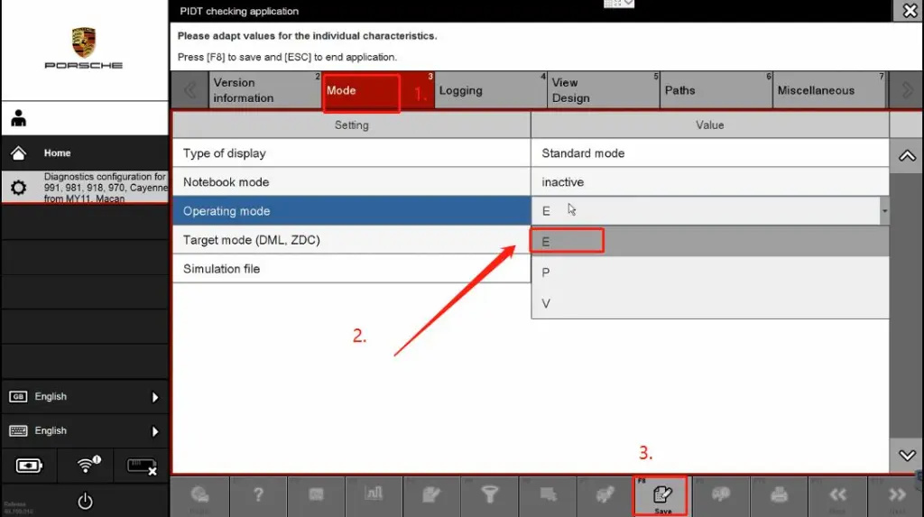 Diagnostice configuration for 991,981,918,970,Cayenne from MY11,Macan, Diagnostics configuration for other model lines, set E Mode;