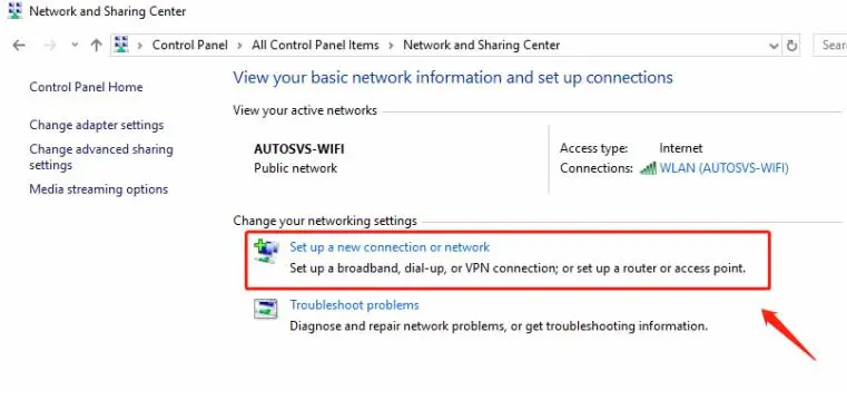 panel” – “network and sharing center”;Click “Set up a new connection or