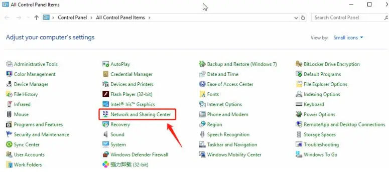 (1) Find the network and sharing center,open ”Start Menu”- “control