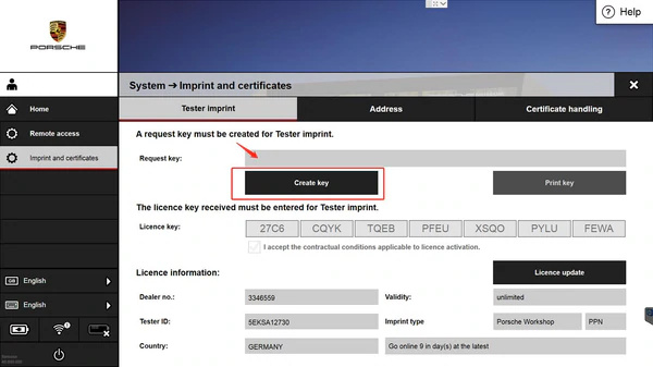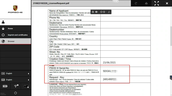 2.Find the serial number and request the KEY, this can be used to apply for the piwis 3 software registration activation code;