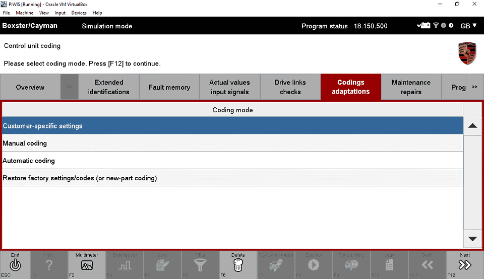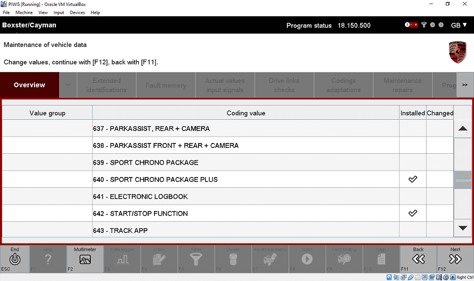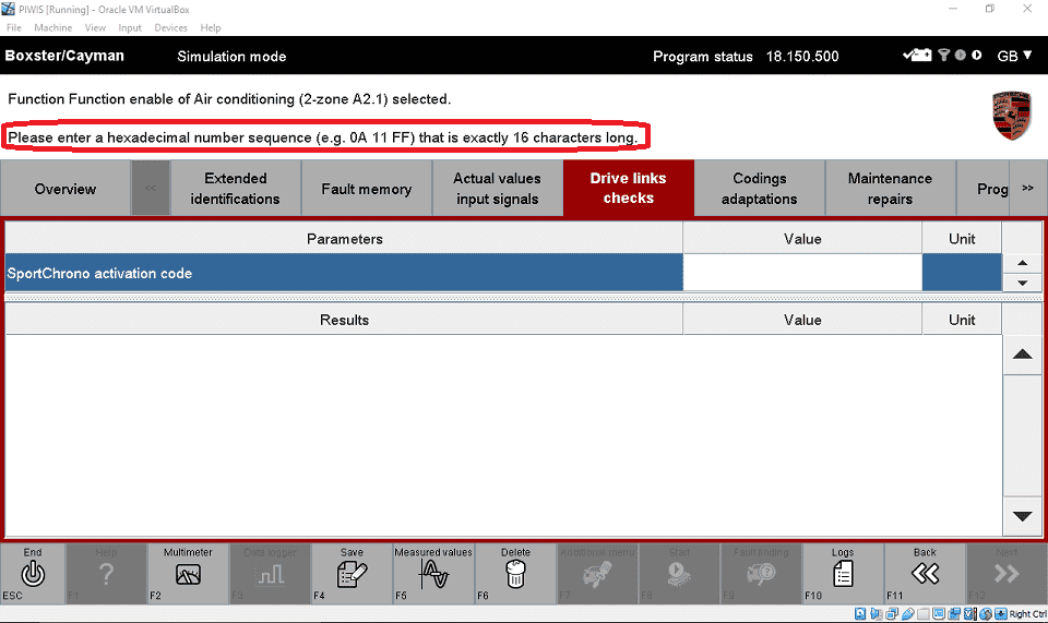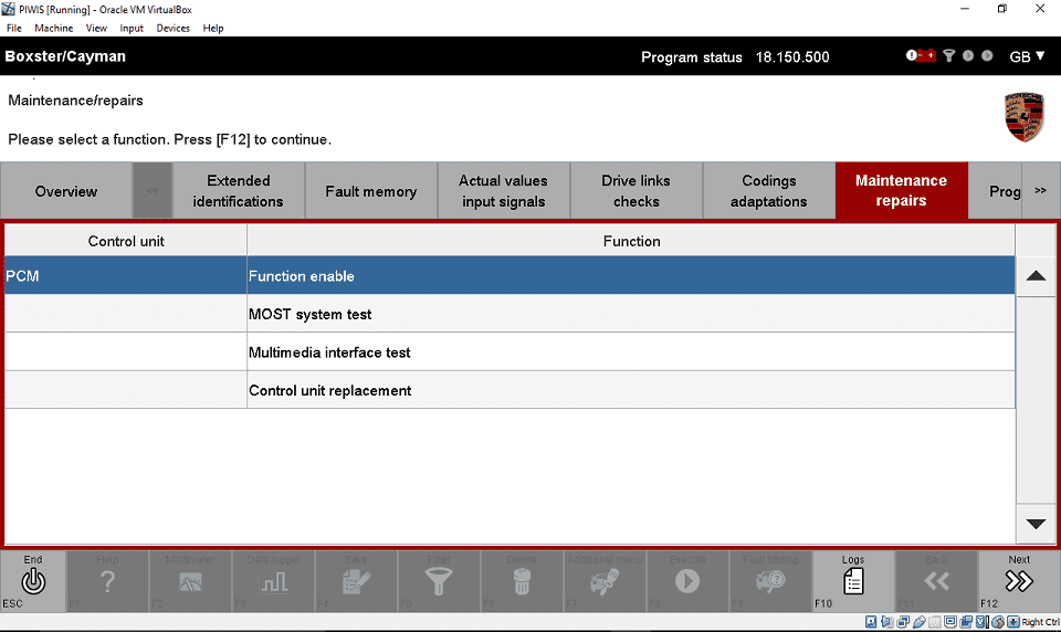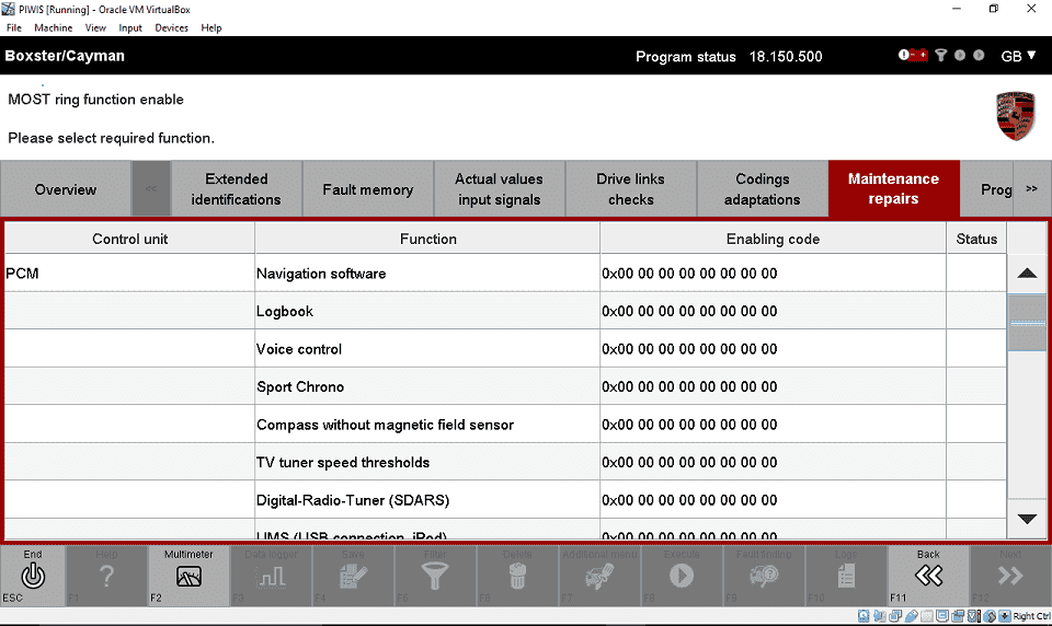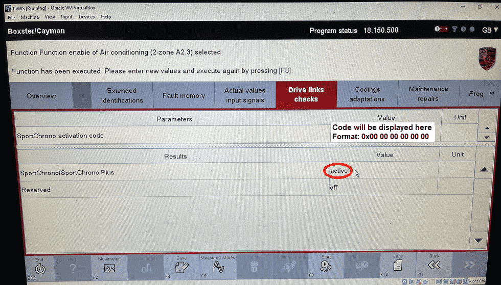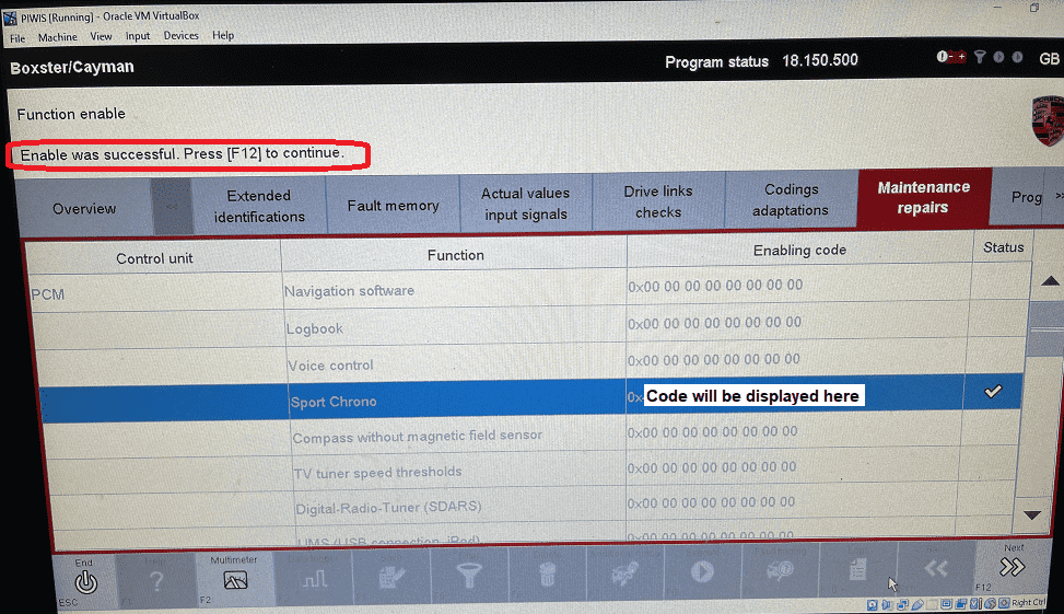 When selecting the PCM control unit in PIWIS, if you go to Maintenance Repairs, there will be a function enable selection that brings up the menu where I can enter codes for a bunch of features, including Sport Chrono. I know that’s where the generated code is supposed to go.