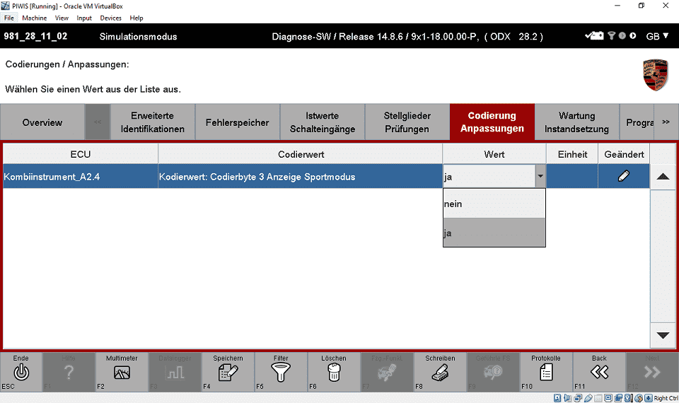 scroll down to Kodiewert: Codierbyte 3 Anzeige Sportmodus, change “nein”