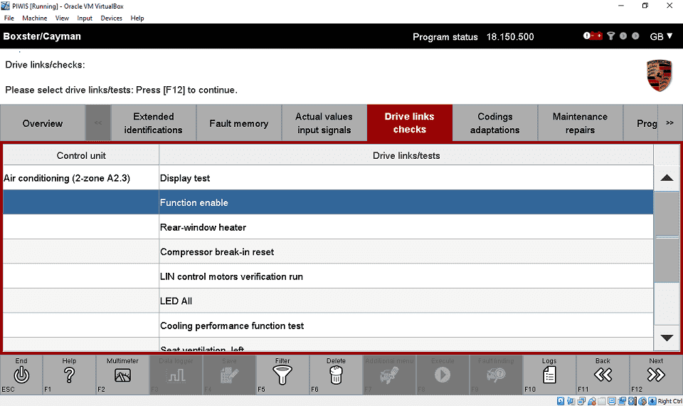 I went to the Air Conditioning control unit, hit the Drive Links Checks tab, and did not find function enable. Stuck already!