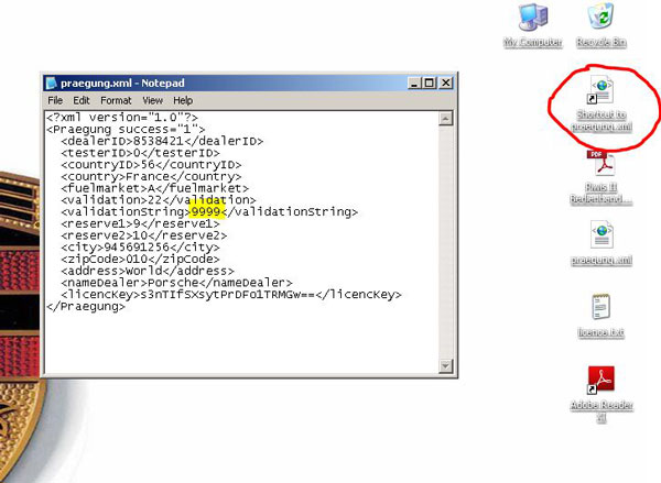 8. Right click on the ‘shortcut to praegeng.xml’ file and open in notepad. Go to the line that has ‘validationstring’ and change the ‘x’ to ‘9999’. This will now give the software a licence validation time of 9999 days. Save then close.