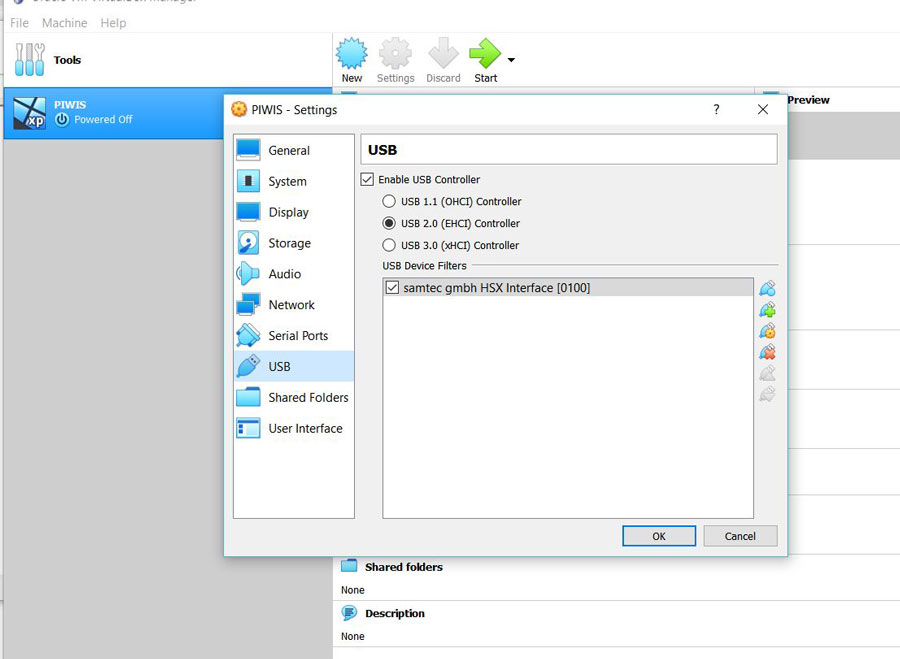 NOTE: Every time I use PIWIS, prior to starting the VM, I conduct step 5 to check the cable has been recognised by VirtualBox. I simply click on the + and see what USB devices VirtualBox can see at that moment. The Samtec interface should be in the list that immediately appears. If you haven’t done everything in the correct order, you will see ‘unknown device’. If this is the case, start the process again. I find that if I do this, I don’t go through the whole process of starting the VM and then PIWIS to find out it hasn’t connected correctly.