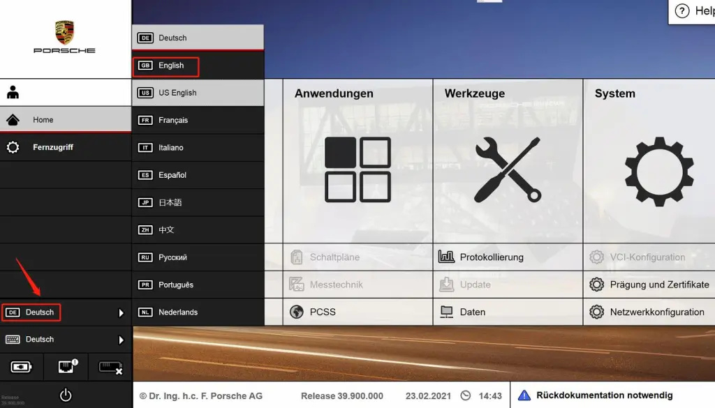 How to change the language of the Porsche Piwis 3 diagnostic software-1
