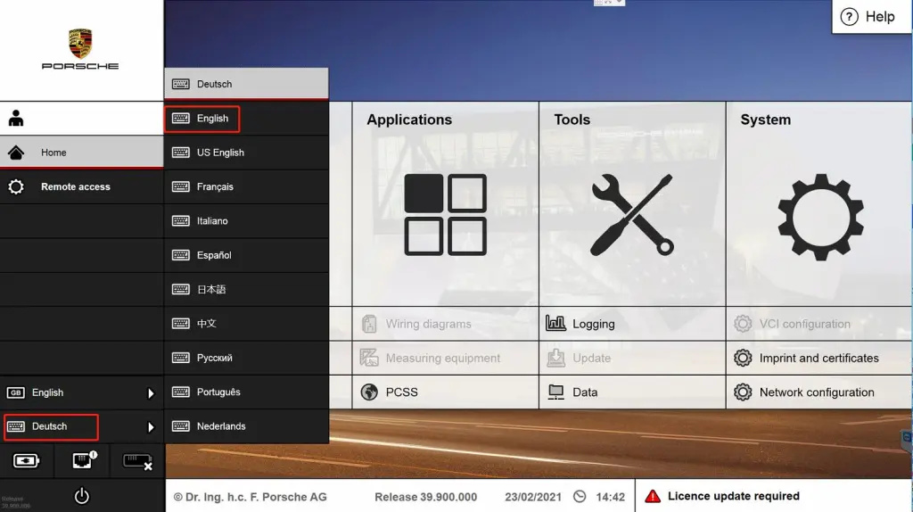 How to set and change the language of the Porsche Piwis 3 diagnostic software