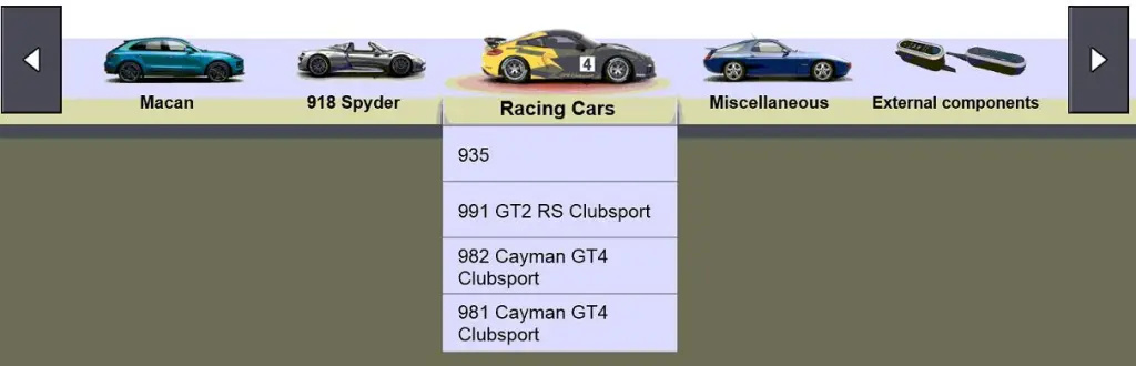 Racing cars:935,991GT2 RS Clubsport,982 Cayman GT4 Clubsport,981 Cayman GT4 Clubsport,