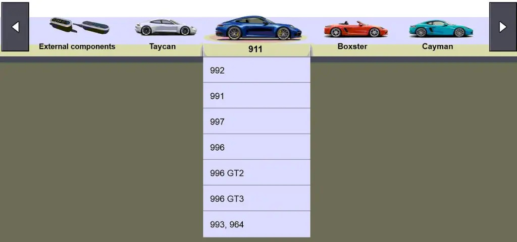 911:992,991,997,996,996 GT2,996 GT3,993,964