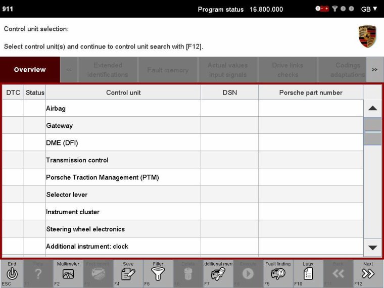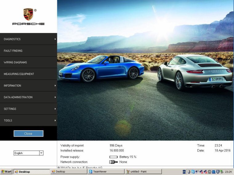 Porsche V16.8 PIWIS Tester-II diagnostic tool software display: