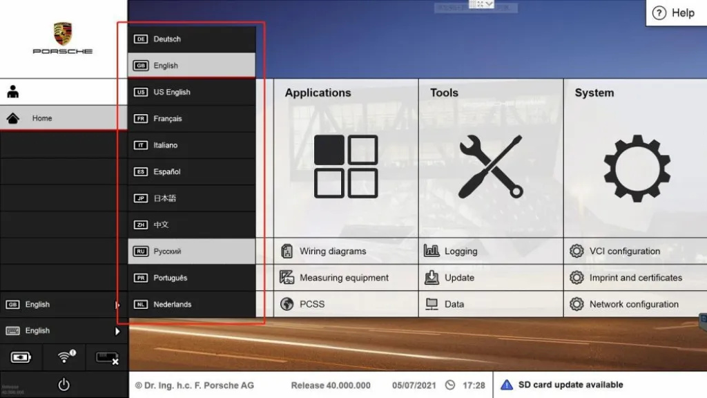 Which languages does the Porsche piwis 3 tester diagnostic software support?